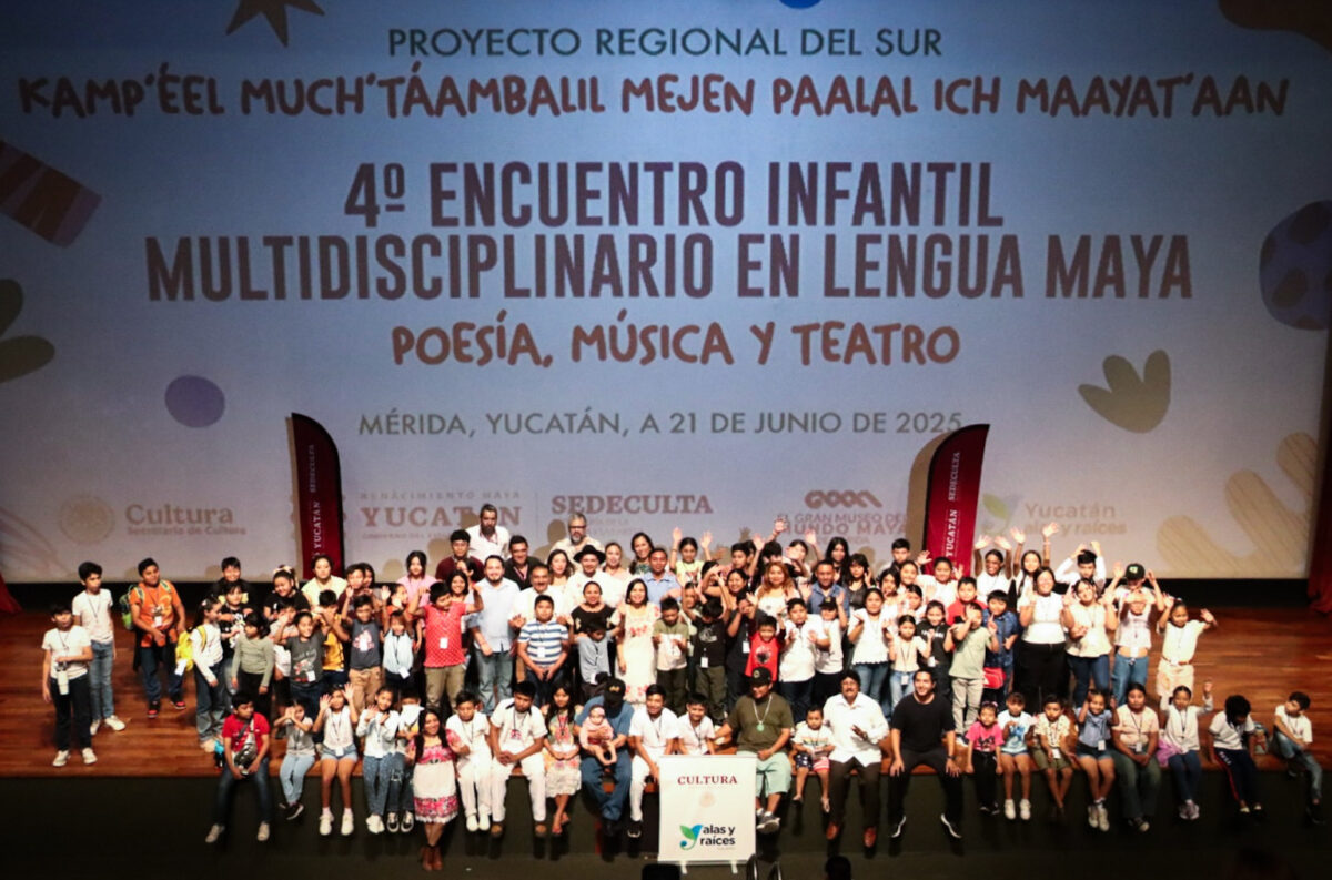Más de un centenar de niñas y niños del interior del estado se dieron cita en el Gran Museo del Mundo Maya para participar en el 4.º Encuentro Infantil Multidisciplinario en Lengua Maya, organizado por la Secretaría de la Cultura y las Artes (Sedeculta), como parte del programa Alas y Raíces de la Secretaría de Cultura del Gobierno de México.