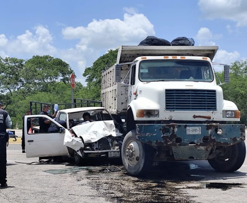 El reporte fue recibido por el control de mando, solicitando verificar un incidente vehicular. Al llegar al lugar, la unidad 6888 confirmó un choque entre un vehículo volquete marca International, color blanco, con placas del estado de Yucatán, y un vehículo Nissan tipo estaquita, también blanco, con placas del estado de Campeche.