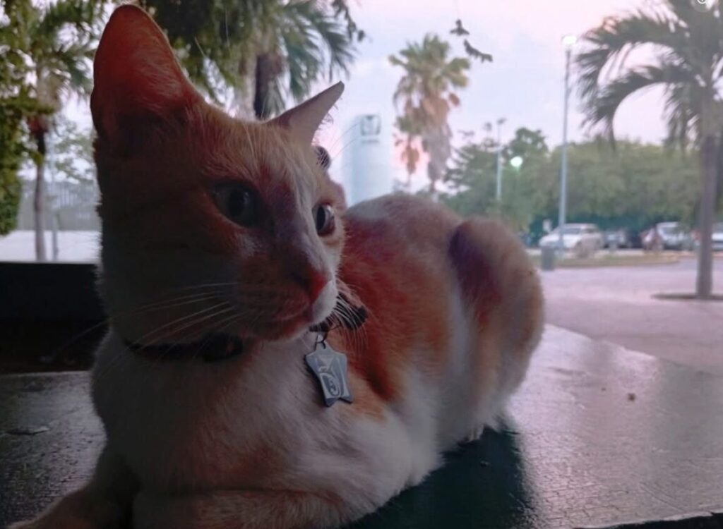 El felino se hace llamar “Michiimss”, tiene un collar con moño y la placa perteneciente al IMSS, por lo que si un día vas por allí, tómate una fotito para el recuerdo, ya que los animales también nos esas energías por luchar la hermosa vida.