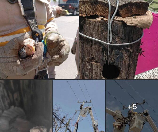 En Chetumal, personal de la CFE encontró un nido de loritos en un poste de madera en muy mal estado. Al reemplazarlo, descubrieron que el hueco —hecho por pájaros carpinteros— era el hogar de las aves. Para cuidarlos, cortaron esa parte del poste y la fijaron a uno nuevo de concreto con abrazaderas. ¡Así los pequeños seguirán seguros!