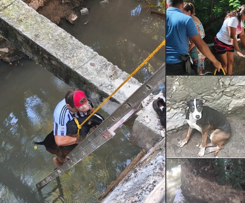 Personal de la Agencia Estatal de Investigaciones, adscrito a la Fiscalía Especializada en Delitos contra Animales, Ambiente y Ecosistemas de Campeche, llevó a cabo el rescate de una perrita de nombre “Mufasa”, que había caído en una zanja ubicada sobre la Avenida Solidaridad Nacional, de la colonia Fidel Velázquez, en esta ciudad capital.