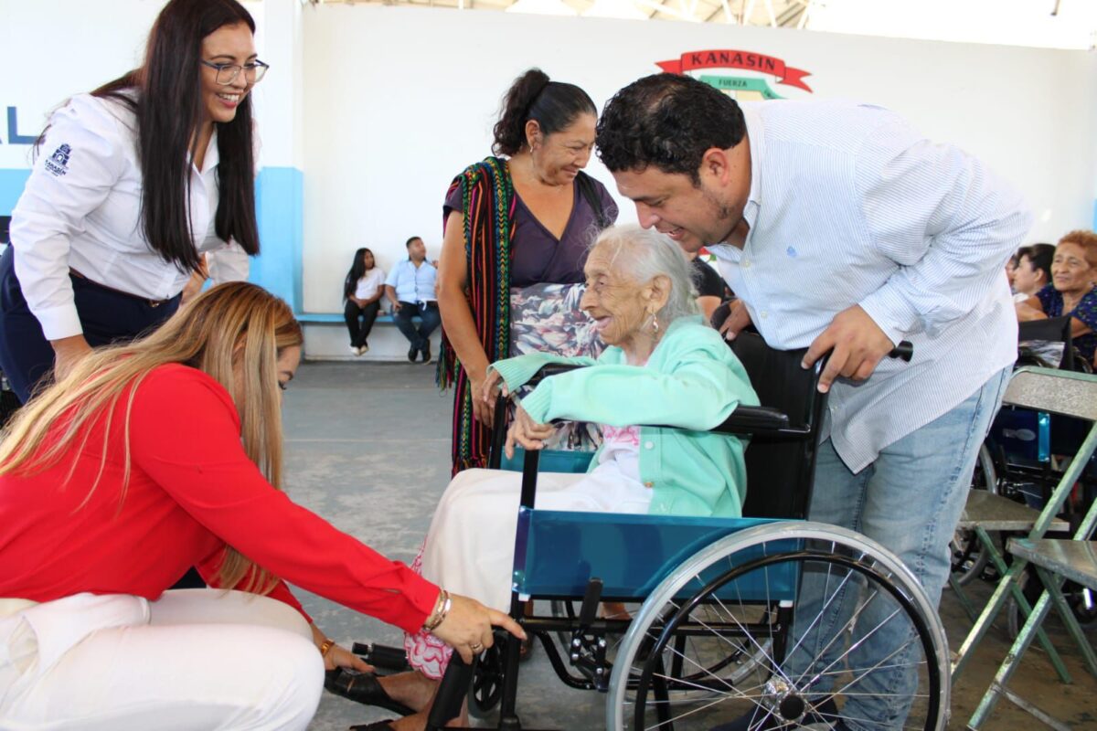 A partir de hoy, 64 personas tendrán una mejora en su calidad de vida, al ser beneficiarios de la entrega de sillas de ruedas, burritos, bastones, muletas, entre otros accesorios que le ayudarán en su movilidad diaria, los cuales se entregaron en evento que encabezaron el alcalde Edwin Bojórquez Ramírez y su esposa y presidenta del DIF de Kanasín, Raquel Balam Rocha de Bojórquez.