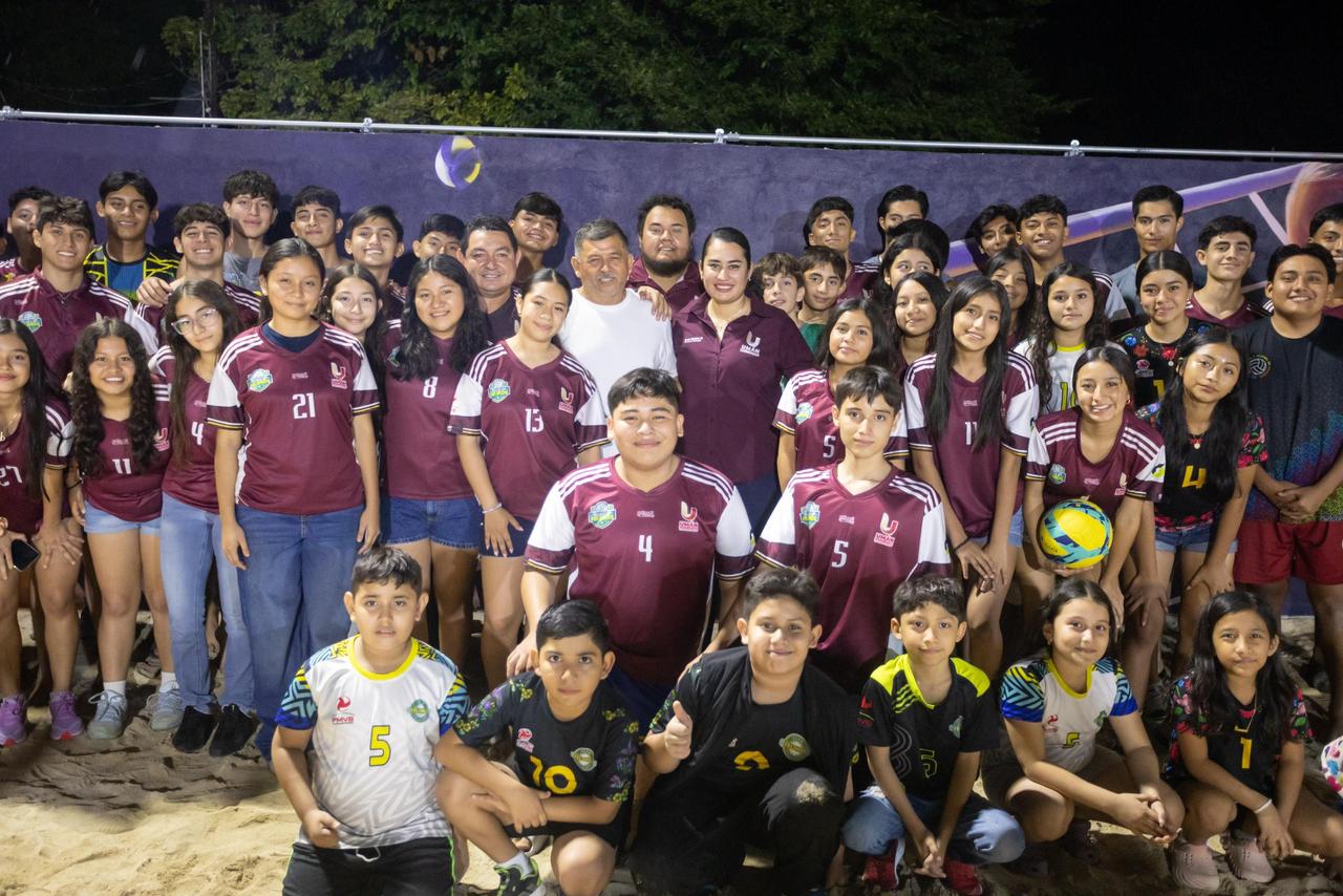Como parte del impulso al deporte y la convivencia familiar, la alcaldesa Kenia Walldina Sauri Maradiaga inauguró la cancha de voleibol de playa “Mtra. Mirza López Gómez”, ubicada en la Unidad Deportiva Cepeda Peraza, un espacio diseñado para fomentar la activación física y el bienestar de la ciudadanía, así como para honrar la memoria y legado de quien en vida promovió el deporte.