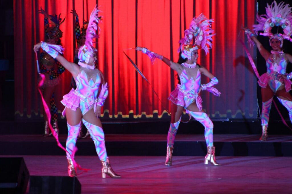 Más de cuarenta bailarines, músicos y artistas, junto a los 12 soberanos del carnaval, llenaron el escenario con vestuarios deslumbrantes inspirados en el mundo del circo, entre payasos, mimos y personajes fantásticos, creando una experiencia visual y artística que fue ovacionada por los asistentes.