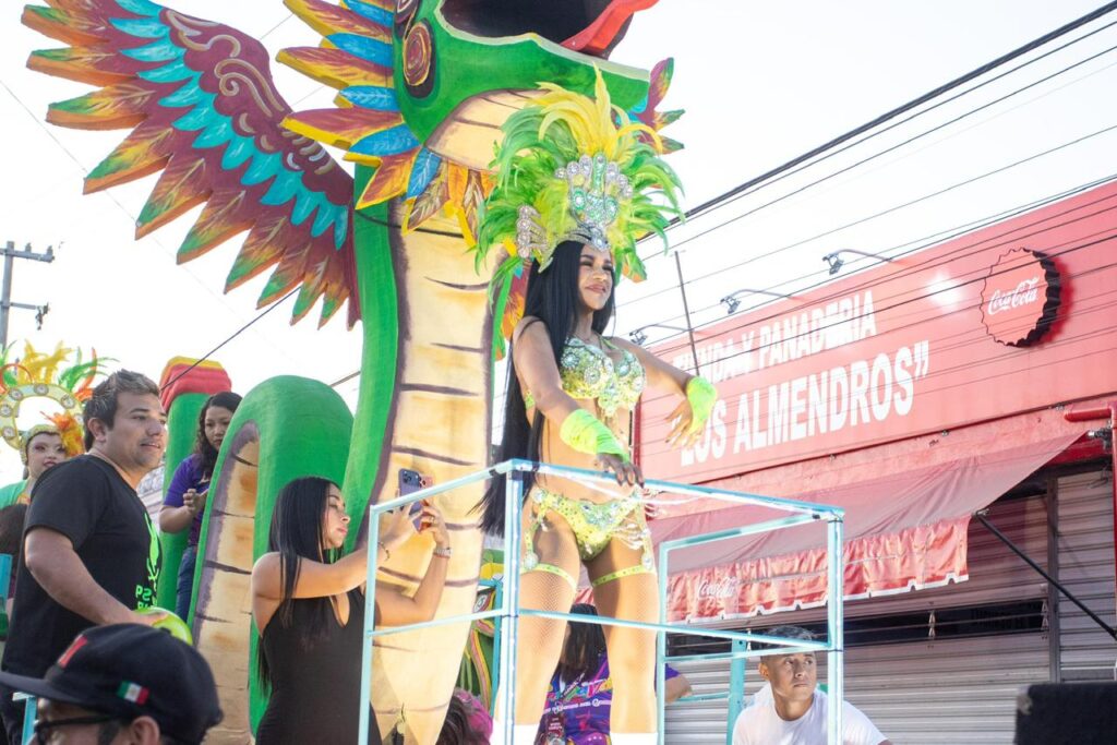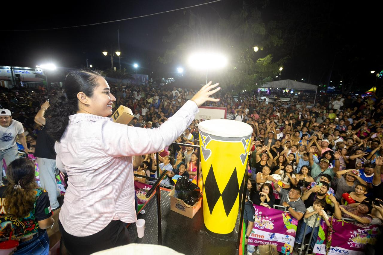 Asimismo, el baile encontró a su mejor representante en Arleth GM, considerada una de las mejores bailarinas del sureste mexicano. Su participación no se limitó a la exhibición; la artista interactuó con el público, accediendo a fotografías y compartiendo pasos de baile, lo que generó una conexión inmediata y electrizante con los jóvenes y adultos que seguían el carro alegórico.